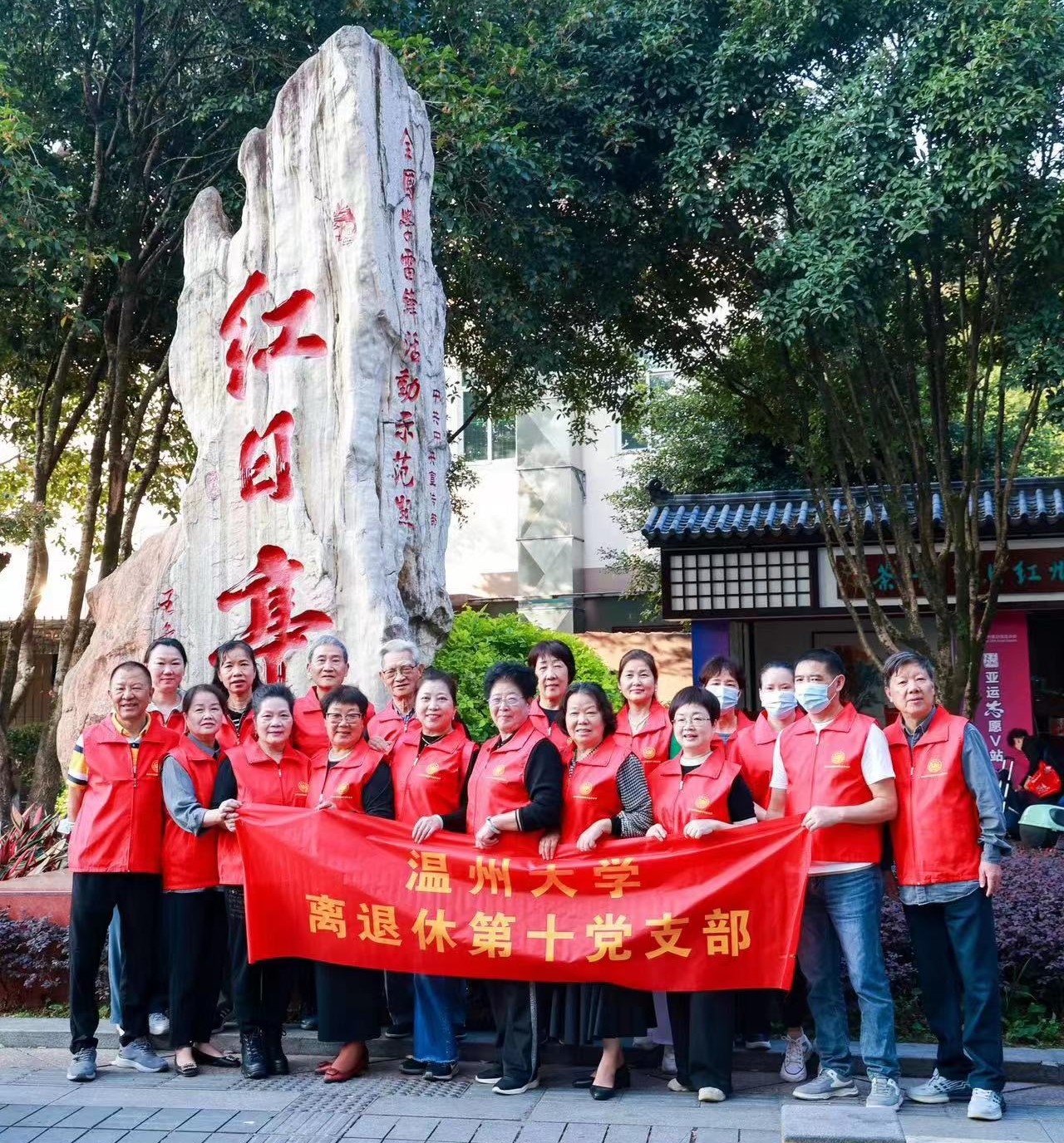 红日亭,温州慈善地标。为深入开展学习贯彻习近平新时代中国特色社会主义思想主题教育,更加深刻感悟习近平新时代中国特色社会主义思想的真理力量和实践伟力,同时为弘扬向上向善的社会风气,充分发挥老党员、老干部正能量作用,10月23日重阳节当天,温州大学离退休第十党支部联合温州工业与能源发展集团有限公司团委,开展“九九重阳节、浓浓敬老情,红心向党、善行天下”慈善志愿服务活动。
