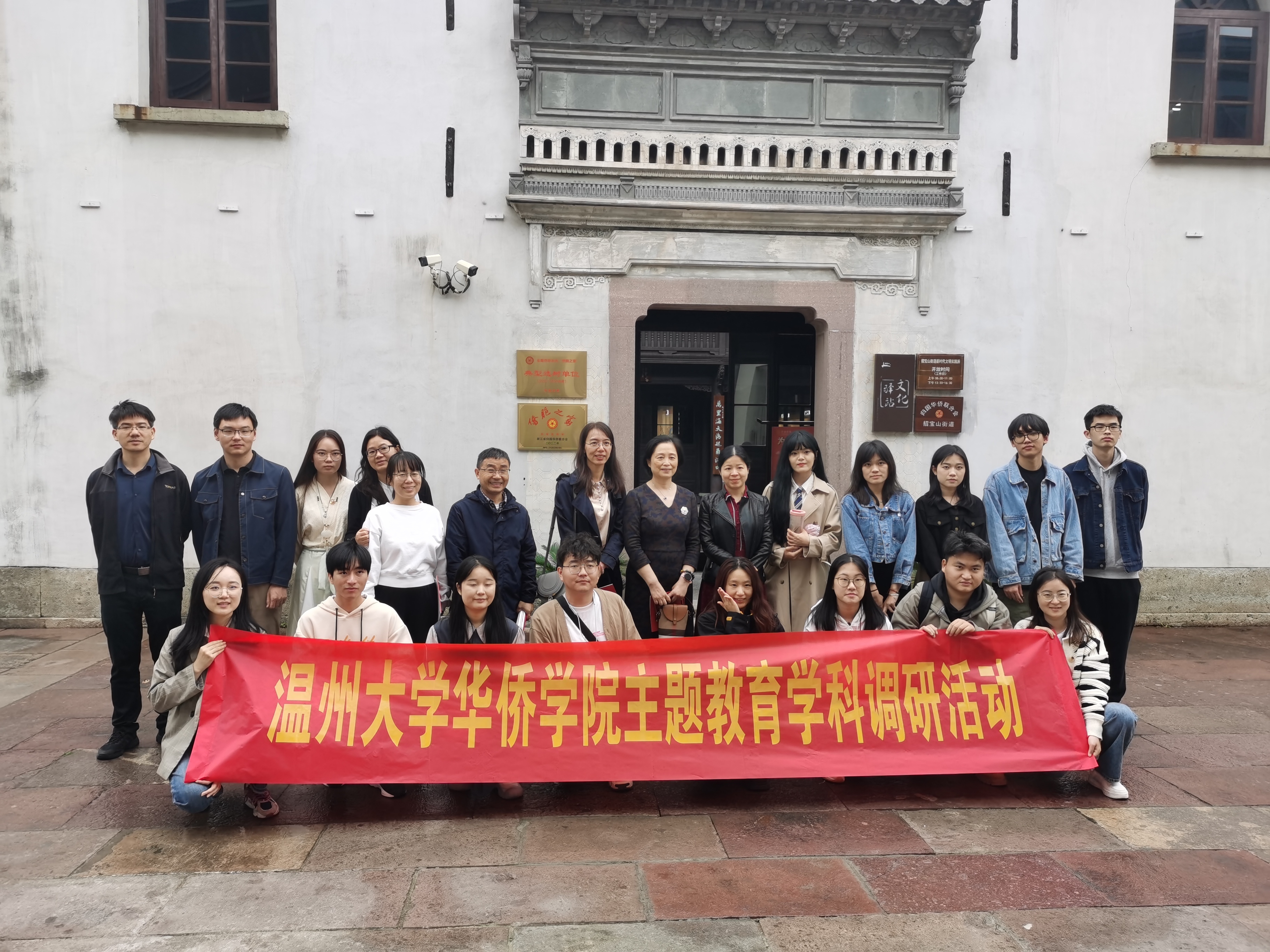 为深入贯彻习近平新时代中国特色社会主义思想主题教育精神,以学铸魂、以学增智、以学正风、以学促干,11月8日,温州大学华侨学院党支部书记包含丽带领华侨学院师生共21人前往宁波,就华侨华人学科建设、人才培养、侨联基层组织建设等问题展开主题教育学科调研活动。宁波市侨联基层工作部部长王芳、四级调研员胡建忠、宁波市镇海区侨联副主席叶美法等热情接待。
