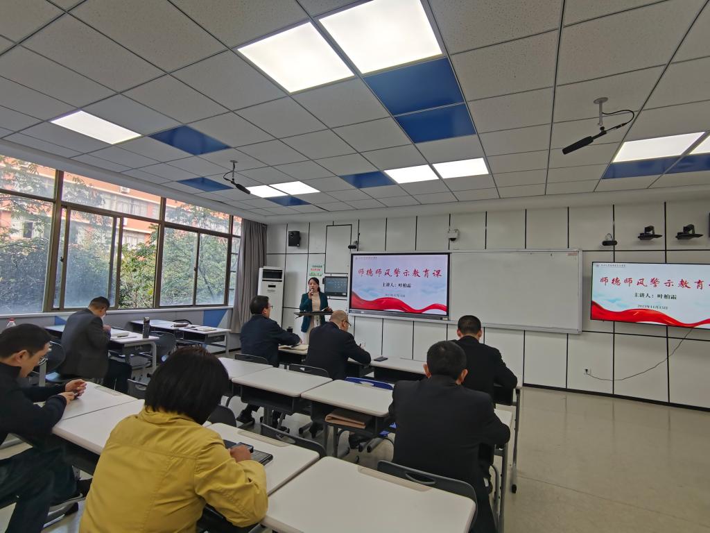 11月15日,马克思主义学院举行教师政治理论学习会。会议由学院党委书记王柏民主持,全体教师参加。学院党委副书记、纪委书记叶柏霜作师德师风警示教育课,副院长孙邦金作主题教育专题党课。