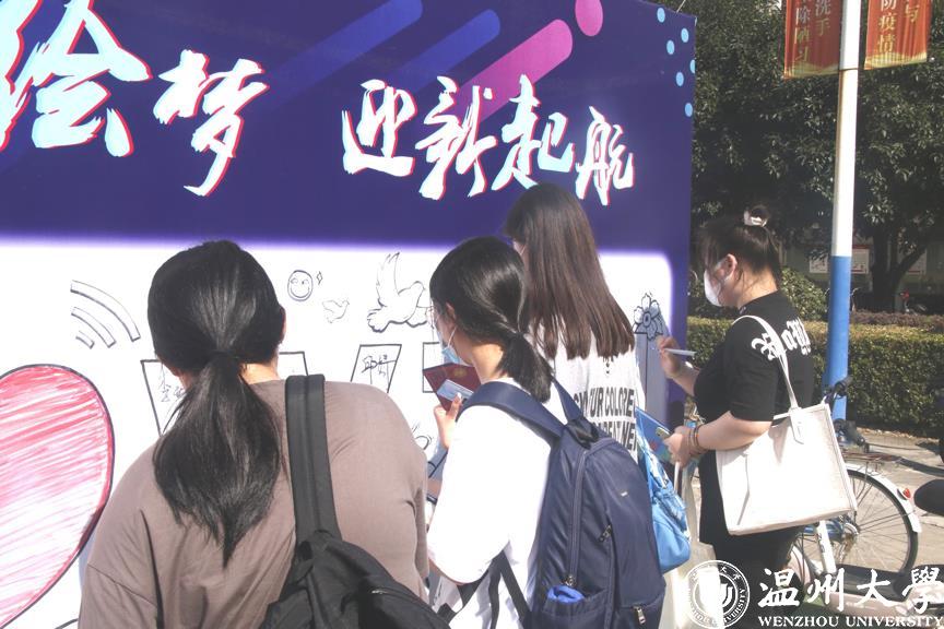 The freshmen are warmed by the fancy welcome activities of various colleges and departments of Wenzhou University: inserting messages into “time mailbox”, the freshmen light up their own “light of science and technology”; writing the university’s motto refreshes students’ spirit; customized “Ode to the Flag” music clip carries the wish that students will shine on the stage of the university; painting on the “Dream Wall” with their senior schoolmates, the freshmen express their dreams and set sail in Wenzhou University...