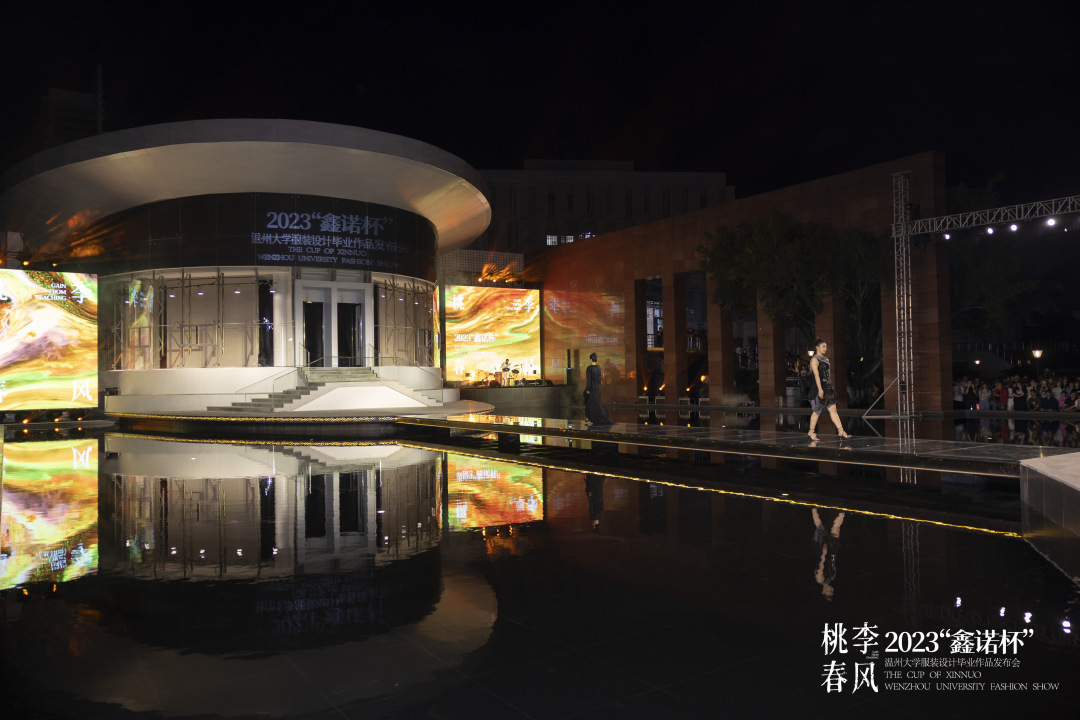 With light, spring breeze, and gentle waves, on the evening of April 20th, a unique fashion show cum graduation project show was held on the water runway of Wenzhou University Art Museum, which was rare compared with previous ones.