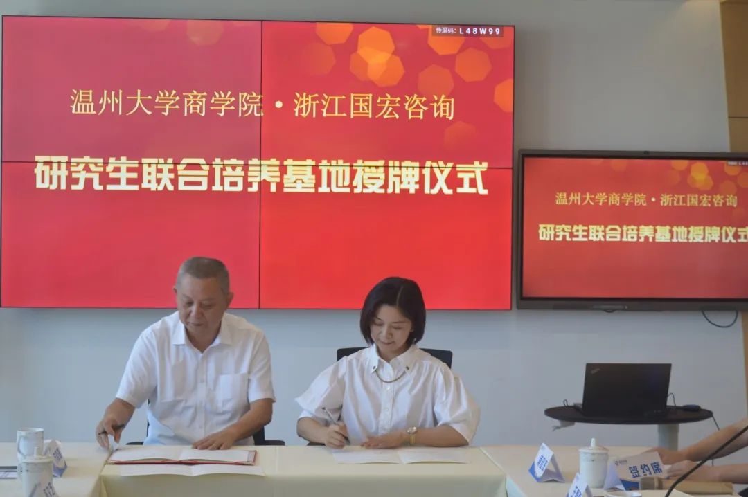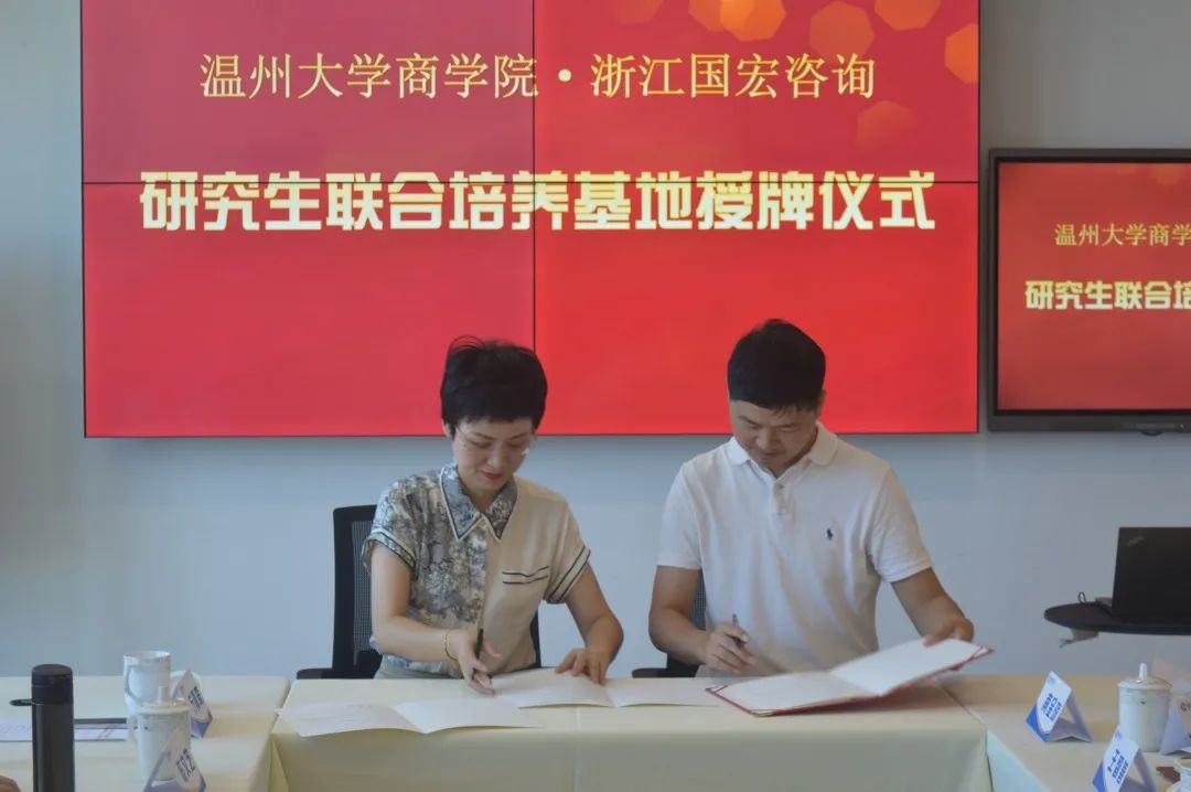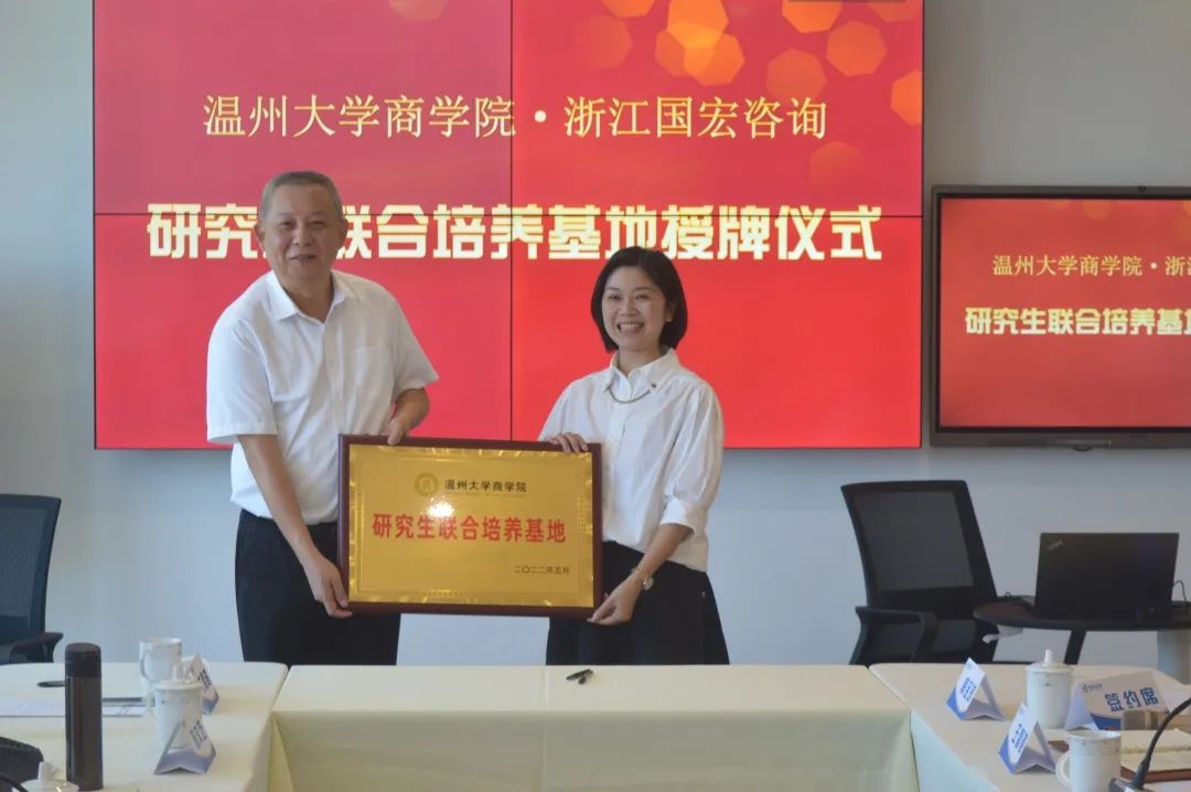 温州大学商学院负责人胡振华致辞 商学院院长胡振华致辞。在致辞中,胡院长向国宏咨询公司的代表们详细介绍了温州大学商学院的师资力量、科研成果、人才培养等各方面的办学情况。商学院目前有两千多名在读本科及研究生,温州大学作为浙南闽北赣东唯一一所综合性教学研究型大学,源源不断向相关行业输送人才。胡院长强调:要将论文写在祖国大地上,将科研成果转化为现实,投入实际应用,在理论与实践的相互融合中,学问方成。此次温州大学商学院与国宏咨询公司合作建立研究生联合培养基地和就业实习基地,旨在共同完成高素质人才培养,为社会人才供应打下良好基础。