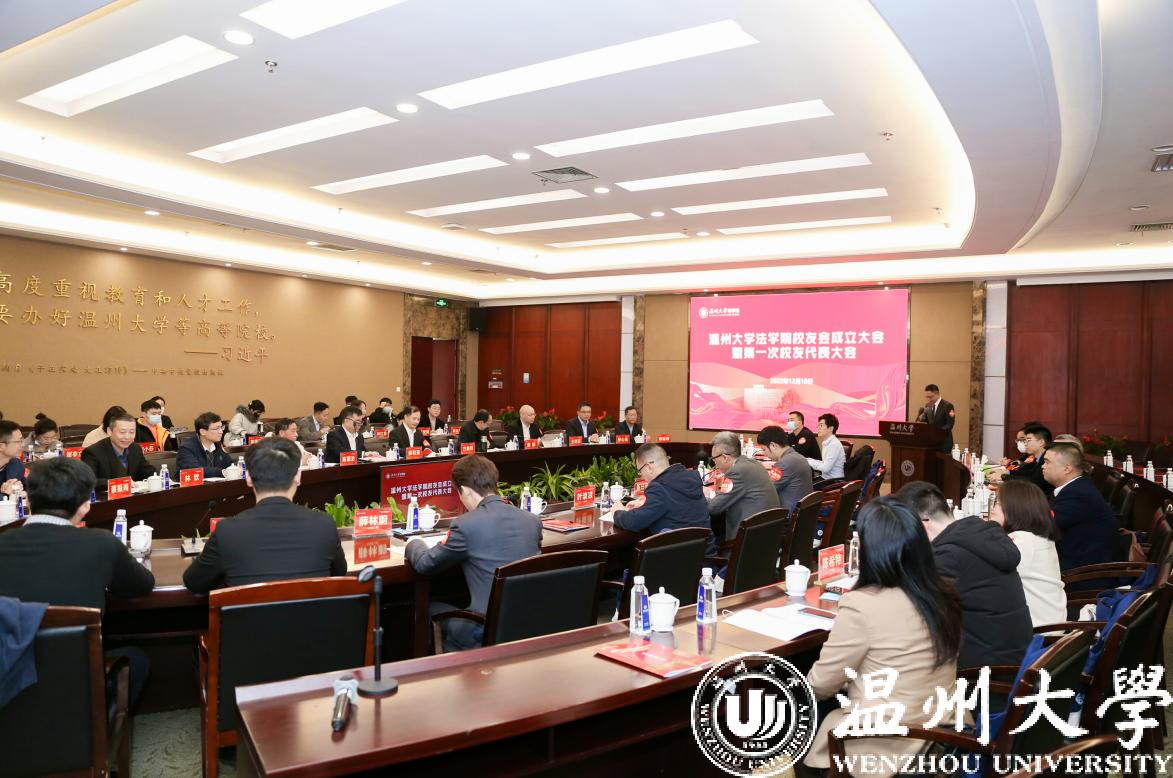 来源:法学院 发布时间:2022-12-14 浏览次数:次为了凝聚校友情谊,促进校友的交流与互助,为学校和学院发展凝心聚力,由法学院历届校友、学院教师共同发起成立“温州大学法学院校友会”。2022年12月10日在温州大学岩松堂白鹿厅召开法学院校友会成立大会暨第一次校友代表大会。