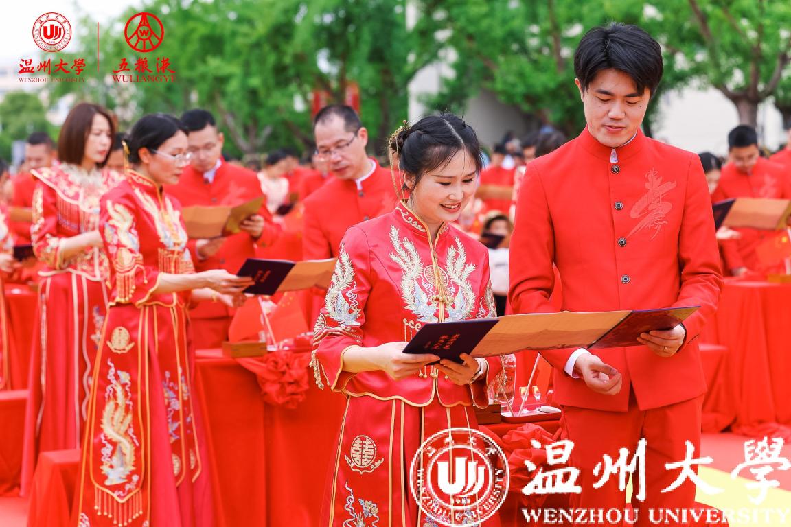 学校历任领导、各部门、各学院师生代表在主会场参加典礼,校友纪念婚礼还通过浙广直播等平台向社会进行了同步直播,海内外温大校友共同见证了这一浪漫时刻。