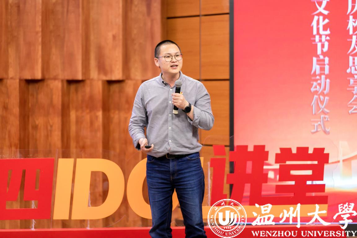 在温州大学IDOL讲堂校友思享会环节,郑小侠老师为在场的青年学子带来《追求幸福的教育生活》的精彩分享。他勉励每一位青年朋友追求更高层次的快乐与幸福,做一个点燃学生、点燃温州、点燃社会的人,为社会主义现代化建设点燃属于我们的青春担当。