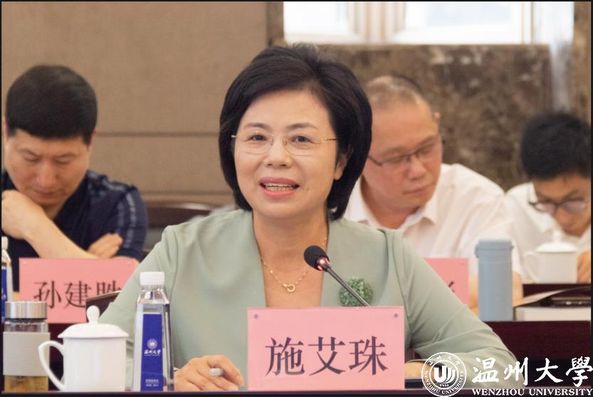 温州市委常委、宣传部部长施艾珠讲话。她指出,温州大学举办以深化温州学研究为主题的研讨会具有重要意义。她对进一步深化温州学研究提出建议:一要更大格局、更宽视野,看待温州学研究的价值性。二要聚焦内核、突出特色,强化温州学研究的辨识度。三要长远规划、内外互动,提升温州学研究的影响力。她强调,当前温州正在奋进“两个先行”,努力在中国式现代化进程中续写创新史。全市人文社科领域要以“温州学研究”为主题主线,努力推动温州学研究创新性发展和创造性转化,推动地域人文研究和改革创新实践相结合,形成文化创新和创新文化双向促进的生动局面,让温州文化和温州人精神交相辉映,不断增强世界温州人的文化认同、情感互动、精神共鸣。