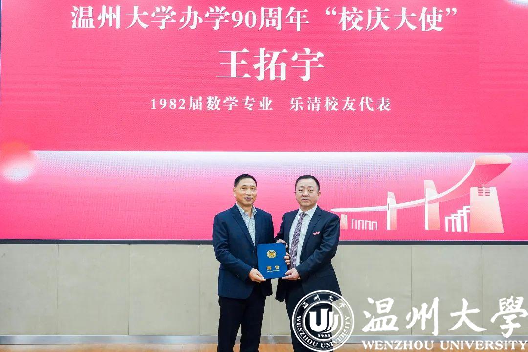 2023年2月18日,王拓宇以温州大学乐清优秀校友代表的身份,参加了温州大学90周年校庆倒计时90天启动仪式:“现场氛围很热烈!”他感慨地说:“温州大学现在已经发展成为一所综合研究型大学,我为自己曾是温大学子深感自豪!”